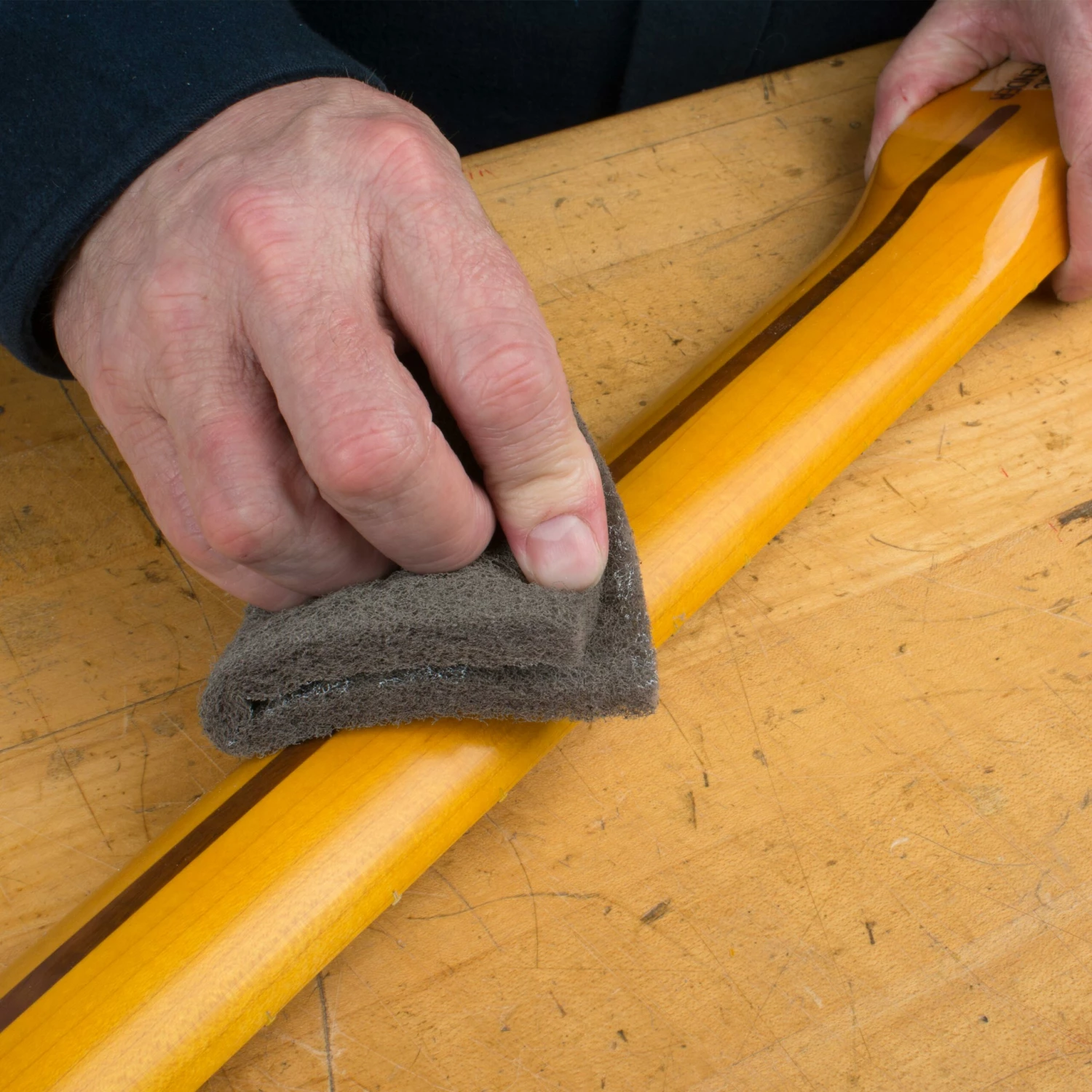 Reusable Scotch-Briteâ„¢ pads have many uses in the shop. They’re durable, washable, and won’t shed the way steel wool does. This means no surprise rust specks in a waterbased finish, and no pesky metal particles that stick to your pickup magnets.