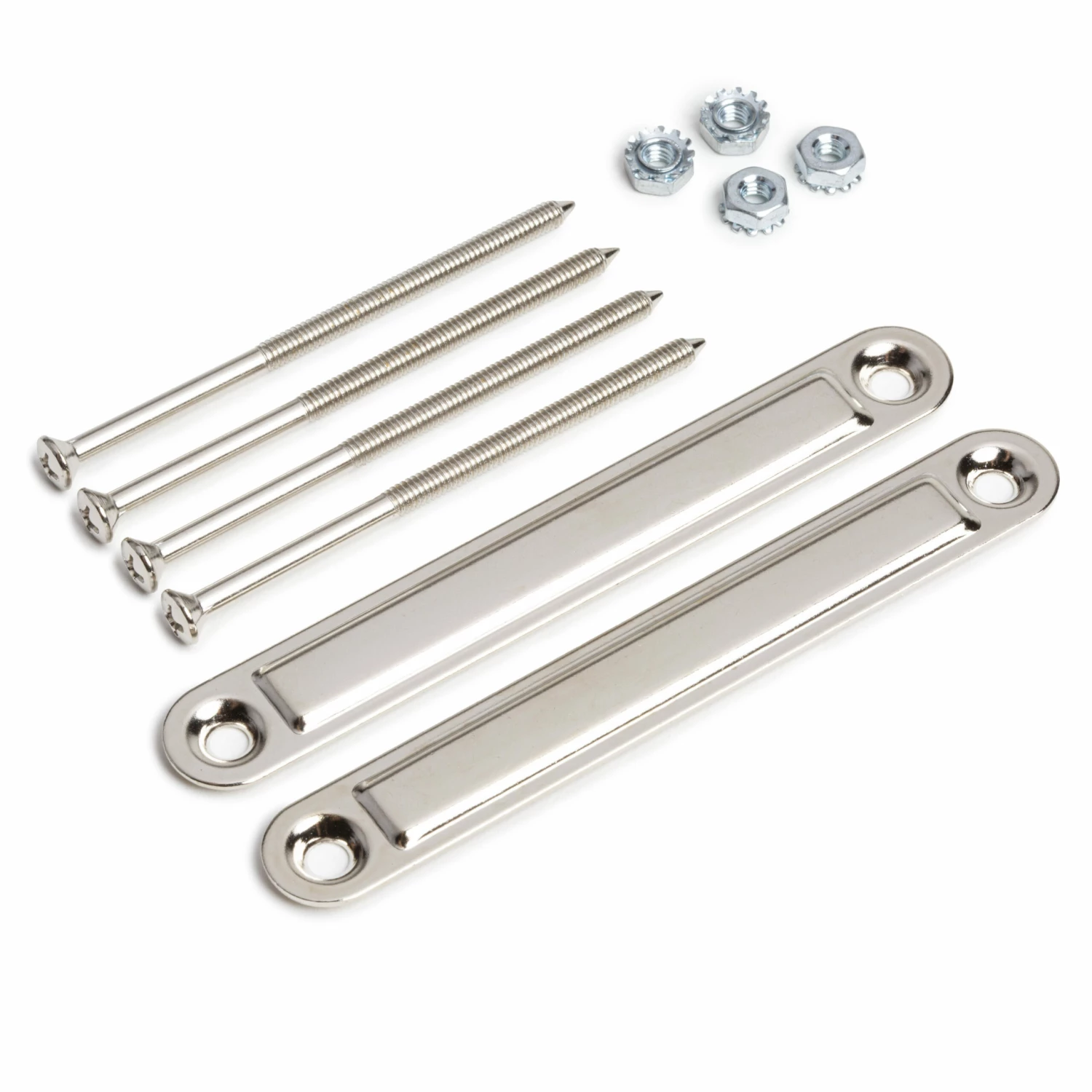 - Set of two 4 5/8″ chrome-plated chassis straps used for mounting chassis in cabinet