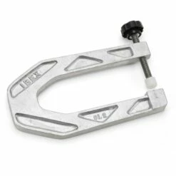 A sturdy cast aluminum clamp for gluing a bridge or brace through a guitar’s soundhole. Designed by pioneering luthier Irving Sloane.