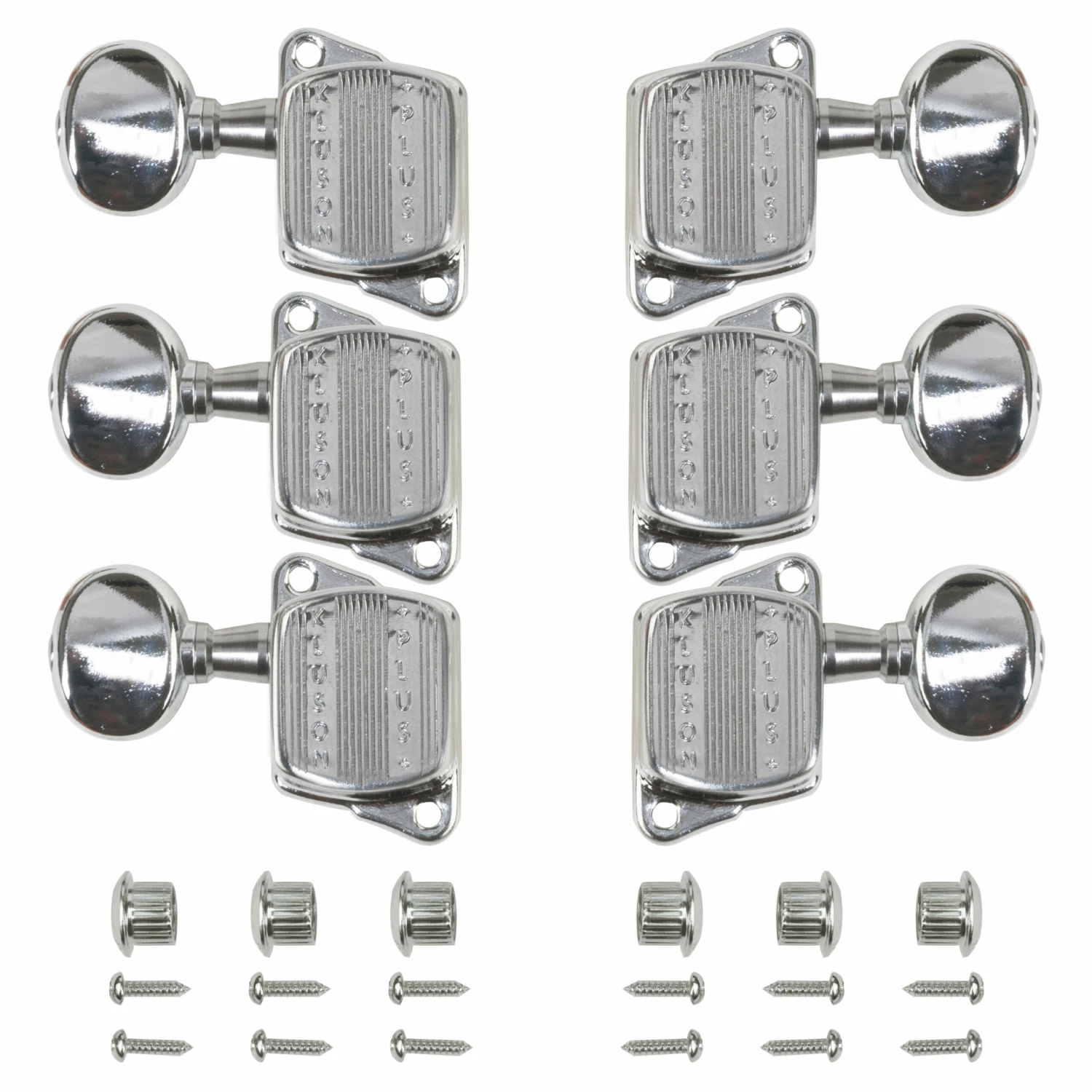 Kluson mirrored the same diagonal screw pattern and bushing size used on hundreds of Epiphone and Squier models. Using the same footprint they added a smoother gear with an impressive 18:1 ratio. Not only that, they also upgraded the knob and plating for a timeless look.Â