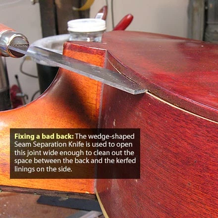 The ideal knife for removing tops, backs and fingerboards from most instruments.
