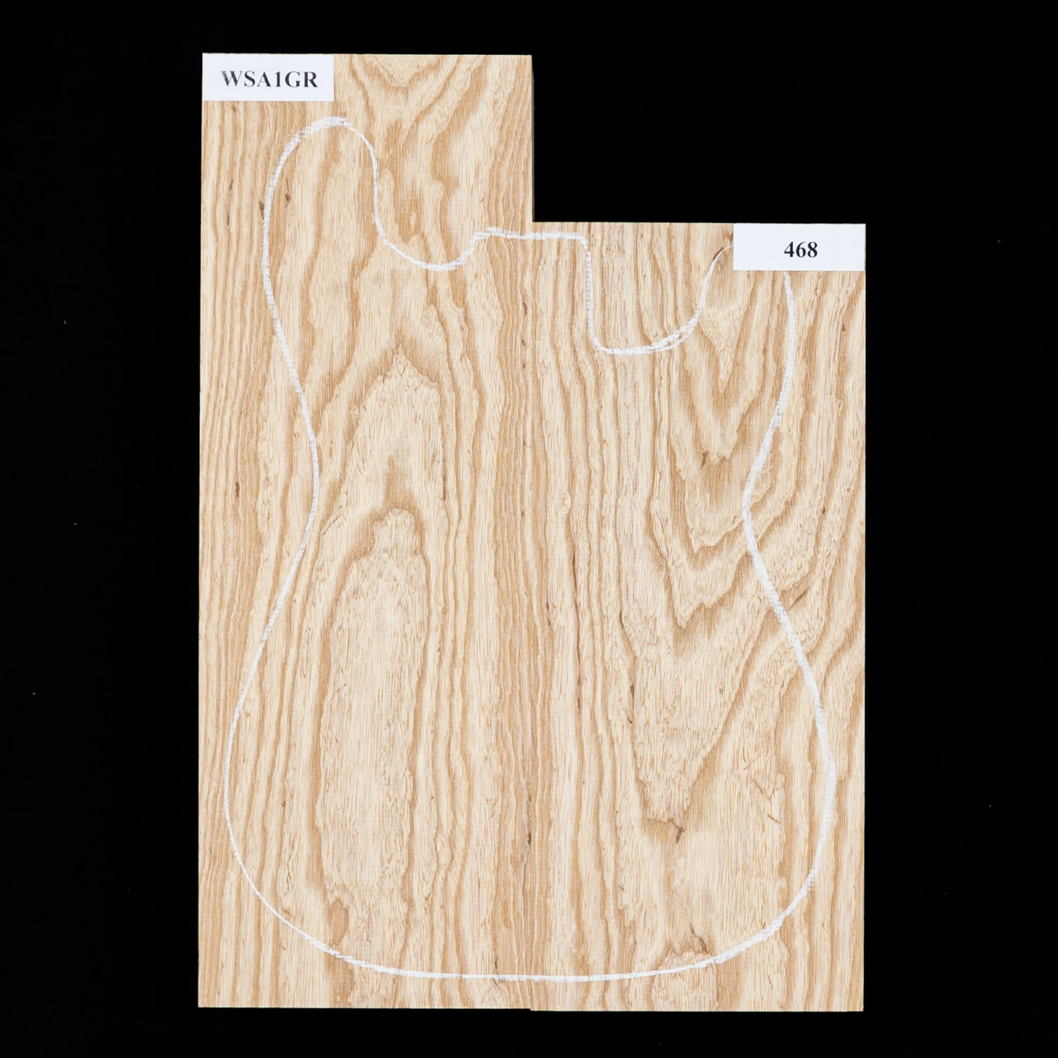 The body blanks are two pieces, joined and grain matched. They’re thickness sanded and ready for bandsawing and routing in your shop.