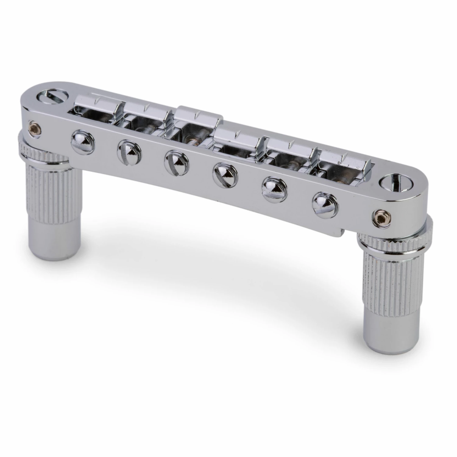 Upgrade to a metric tune-o-matic with TonePros. One of the electric guitar’s easiest upgrades, TonePros’ locking functionality instantly improves any stock bridge system. For most guitars, it’s a drop in replacement. The TonePros TPFP bridge is designed for “fat post”, metric-style guitars and comes notched for instant installation.